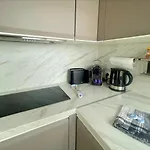 この1のベッドル-ムアパ-トメントには冷蔵庫,オ-ブン とガラス製品を設けています.